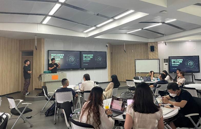 当天下午拌饭科技CEO张为以《智能生成叙事革命:AIGC漫剧创作全解析》为主题,结合自身丰富行业工作经验,详细讲解各类AIGC工具的功能特点、操作方法及应用场景,同时通过实操性指导,帮助教师在教室现场实践AIGC相关软件,提升老师们人工智能生图、生视频、生脚本等具体的操作能力,以便更好地将其融入日常教学,提升教学效率与教学效果,推动技术与教学实践的深度结合。