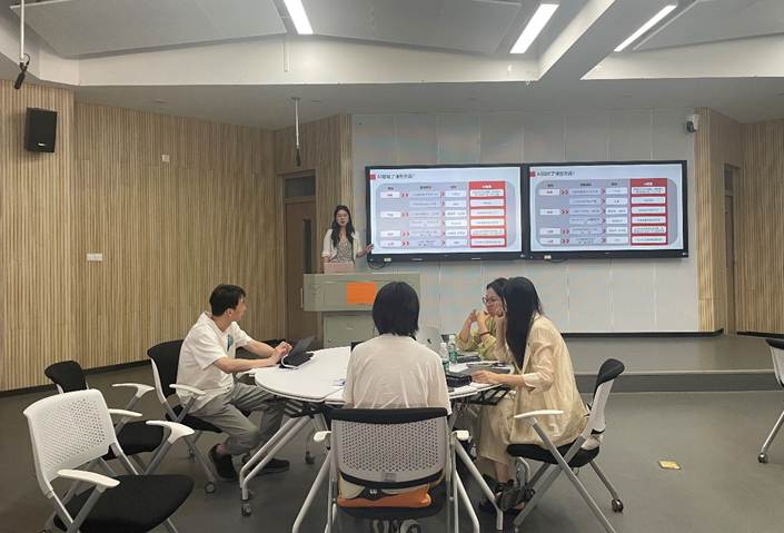 当天下午,学院开展了《2024-2025-2学期课程汇报》教研活动,采用了“教师汇报+分组讨论”的形式,四位汇报教师分别围绕各自所授课程,重点介绍了在课程中AIGC技术融入教学、学生学习效果等情况。老师们通过交流碰撞,共同优化课程设计与技术应用方案。